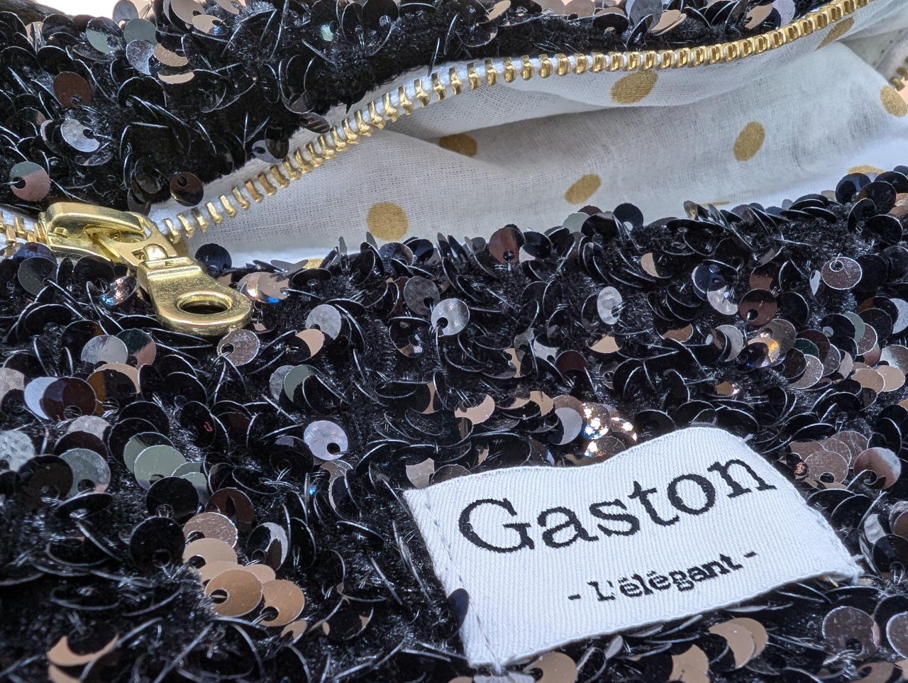 – Tissu extérieur: 100% polyester (sequins brodés sur velours)